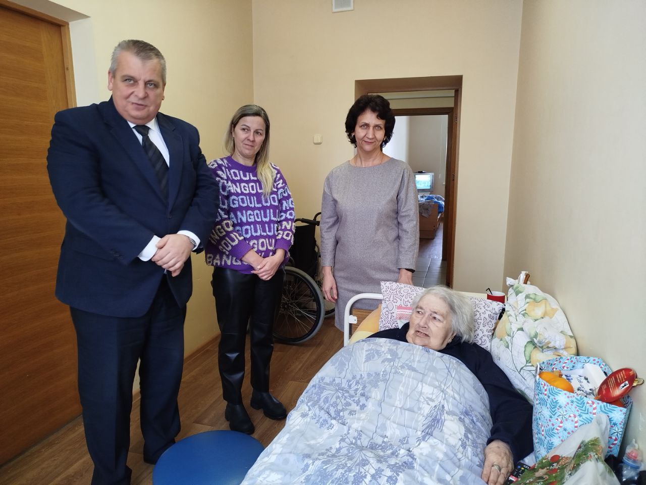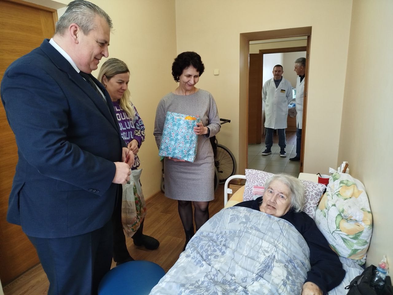 В преддверии праздников навестили бывшую малолетнюю узницу концлагеря Любовь Побережник с поздравлениями и со словами благодарности главный врач Сморгонской ЦРБ Виталий Крупович и председатель первичной профсоюзной организации Ирина Лепешинская.